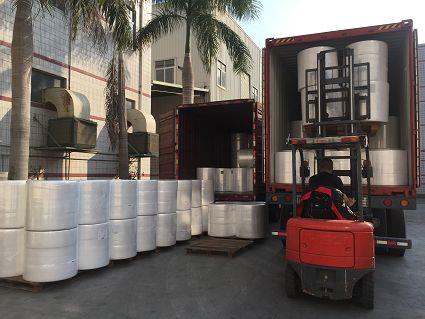 Um contêiner de 40 pés pode receber não tecido spundbond em torno de 12T.